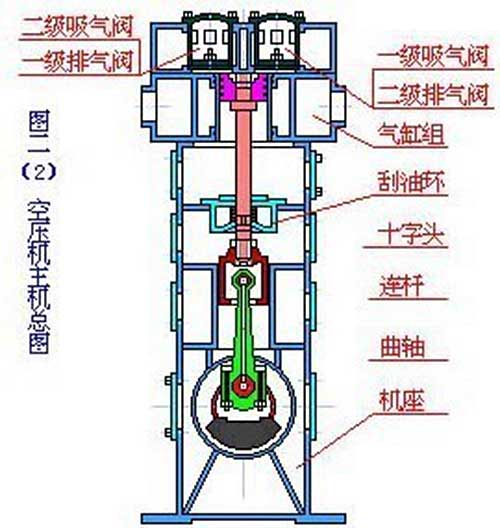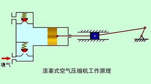 活塞式空氣壓縮機(jī)的工作原理:活塞式空壓機(jī)在氣缸內(nèi)作往復(fù)運(yùn)動(dòng)的活塞向右移動(dòng)時(shí),氣缸內(nèi)活塞左腔的壓力低于大氣壓力,吸氣閥開(kāi)啟,外界空氣吸入缸內(nèi),這個(gè)過(guò)程稱為壓縮過(guò)程。當(dāng)缸內(nèi)壓力高于輸出空氣管道內(nèi)壓力后,排氣閥打開(kāi)?;钊耐鶑?fù)運(yùn)動(dòng)是由電動(dòng)機(jī)帶動(dòng)的曲柄滑塊機(jī)構(gòu)形成的。曲柄的旋運(yùn)動(dòng)轉(zhuǎn)換為滑動(dòng)--活塞的往復(fù)運(yùn)動(dòng)。這種結(jié)構(gòu)的壓縮機(jī)在排氣過(guò)程結(jié)束時(shí)總有剩余容積存在。在下一次吸氣時(shí),剩余容積內(nèi)的壓縮空氣會(huì)膨脹,從而減少了吸入的空氣量,降低了效率,增加了壓縮功。